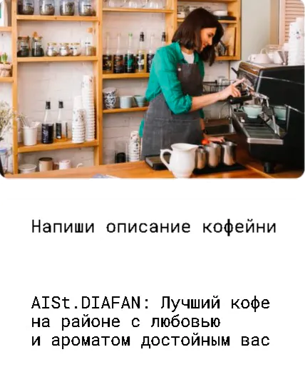Задайте любой вопрос или попросите что-либо написать, например, описания для товаров и на основе этих данных алгоритмы ИИ автоматически создадут нужные тексты.